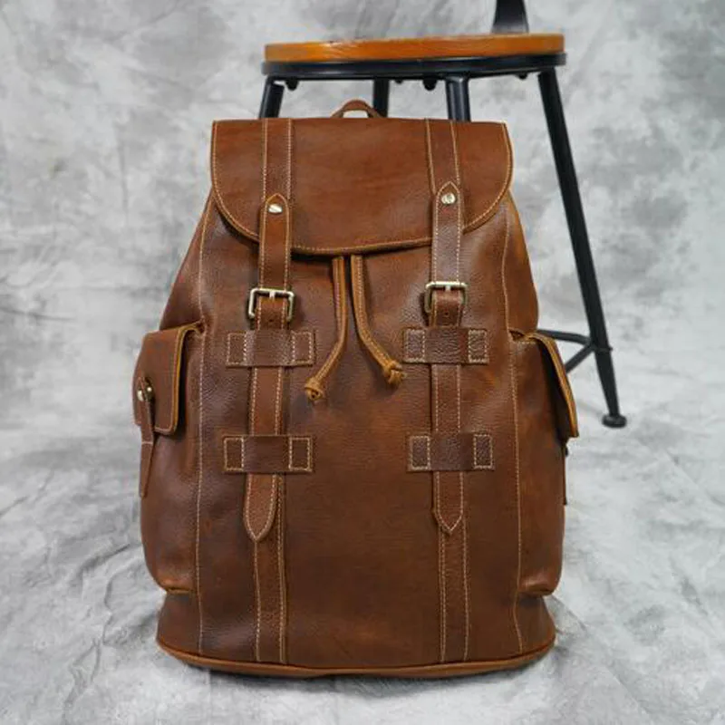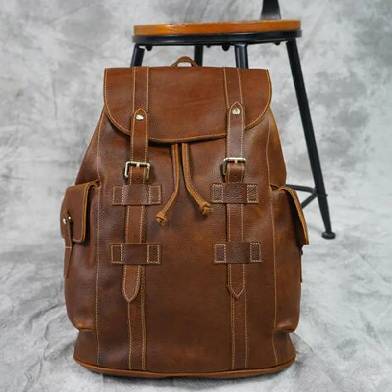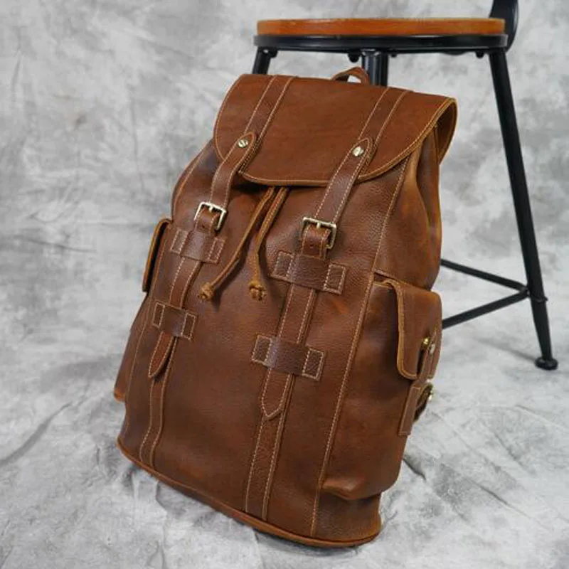 New Retro Men Backpack 100% Genuine Leather Travel Shoulder Bag Man Large Capacity Teenager Male Mochil