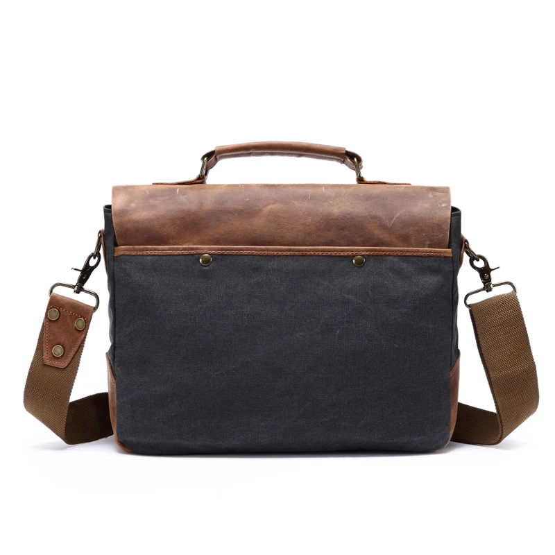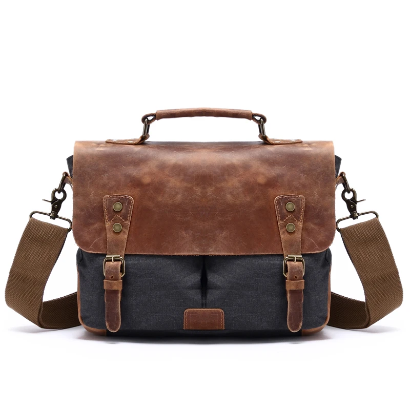 Hot Product Men Briefcase Leather Canvas Laptop Bag Satchel Male Messenger Shoulder School Work Bag Vintage Cas
