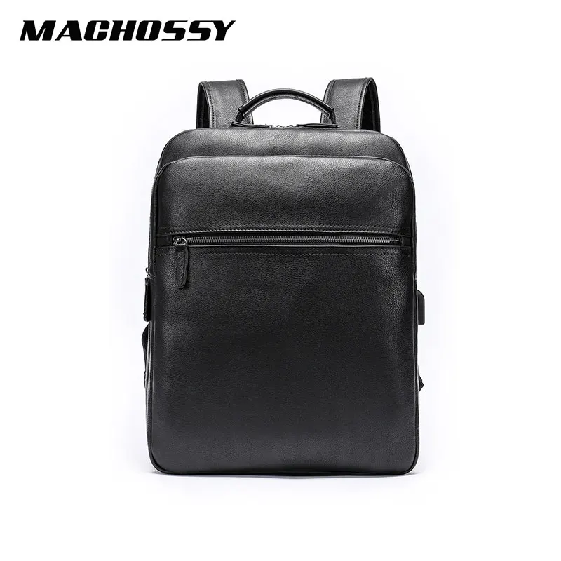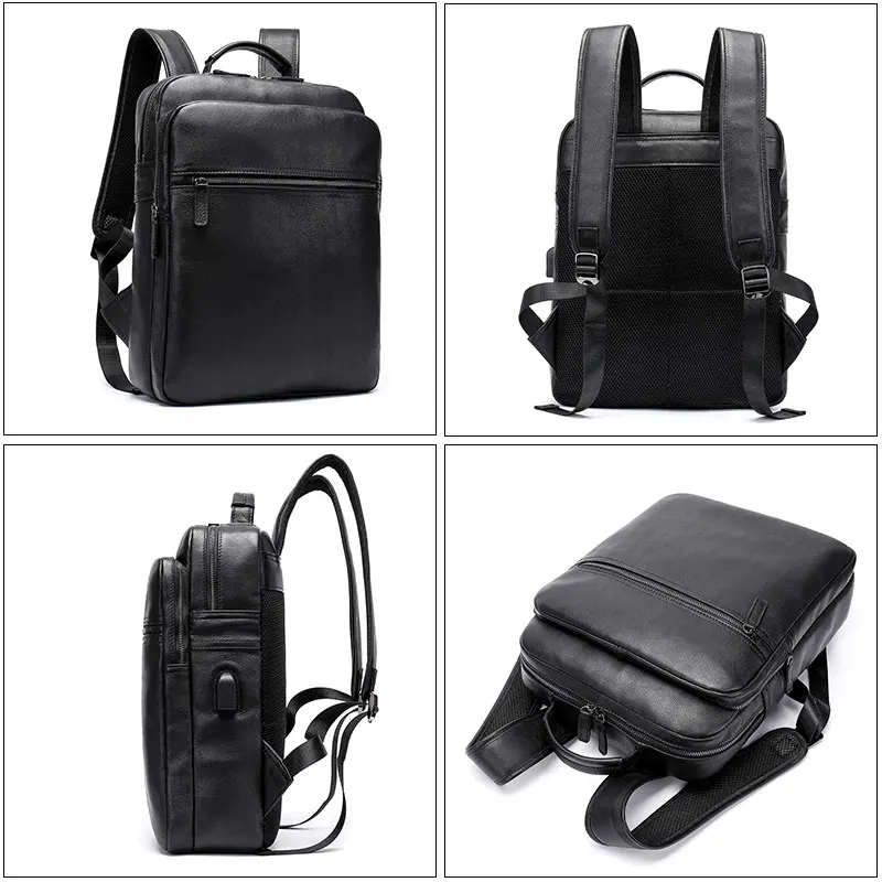 Get Men Genuine Leather Backpack Fashion Charging Design Laptop Backpack High Quality Cowhide Leather M
