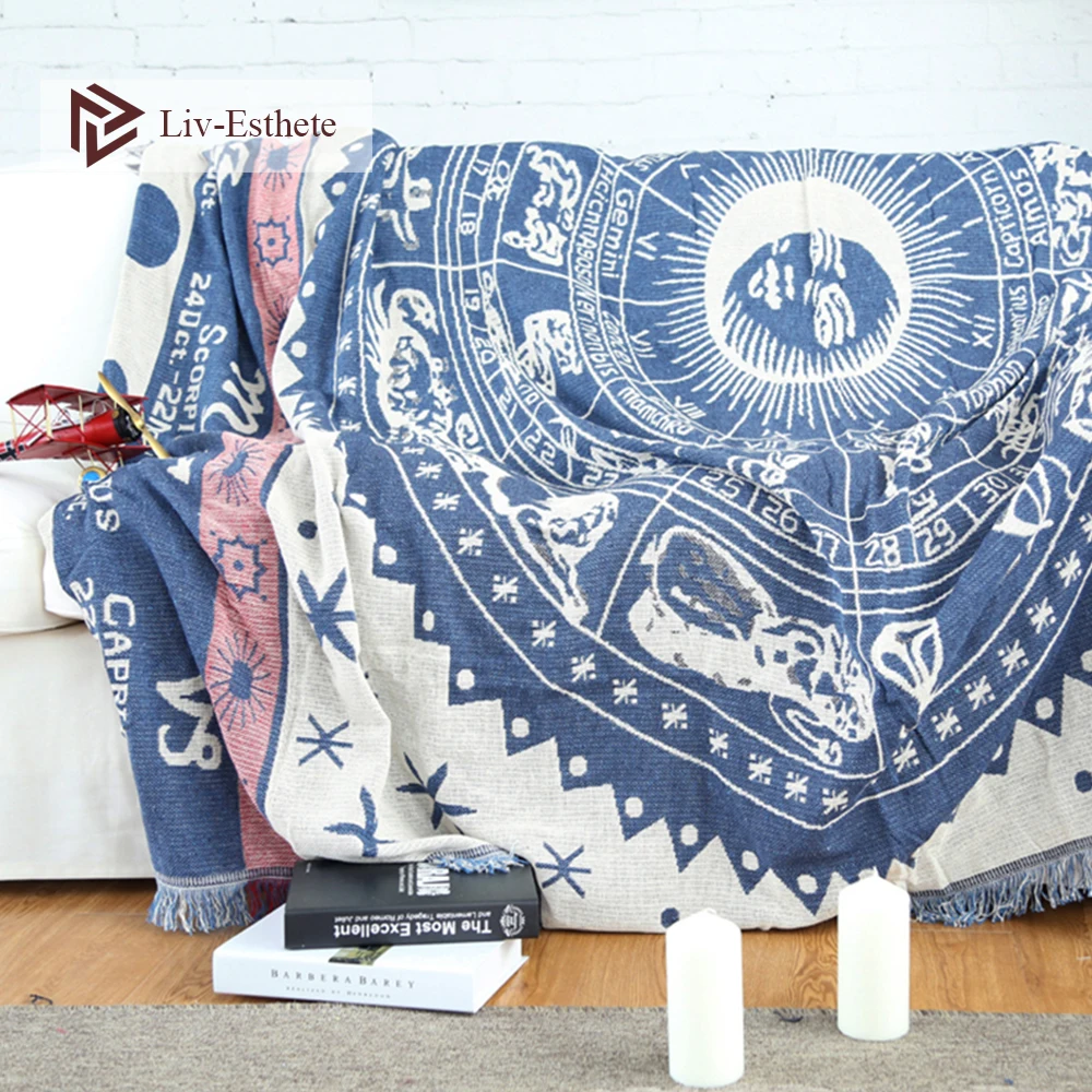 Get Liv-Esthete Fashion 100% Cotton Bohemia Sun Moon Blanket Throw Tassel Blanket Adult Sofa Bed Sleepi