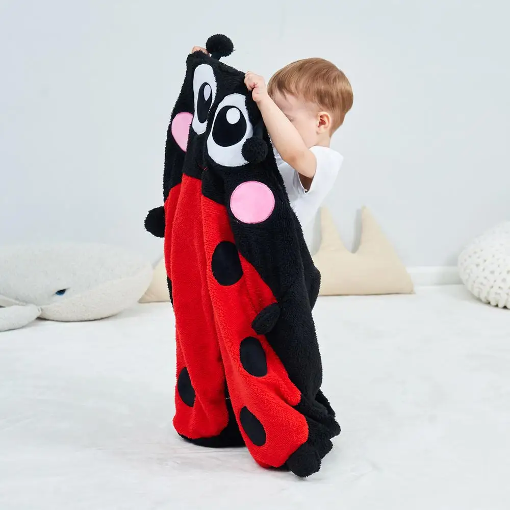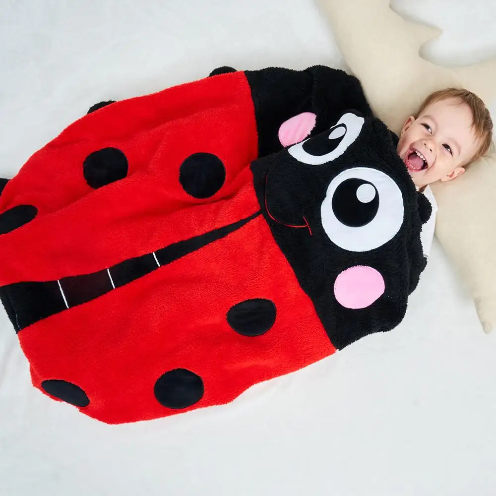 Cheap Ladybug Blanket for Kids 2-in-1 Soft Plush Fleece Blanket Sleeping Bag Pocket Style Animal Plush To